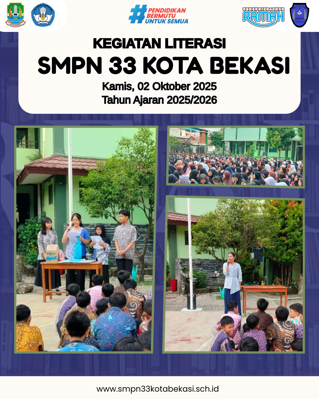 Email : smpn3tiga.kotabekasi@gmail.com Telepon : 021 - 82421867 Alamat : Jl. Narogong Ceria IX D No.158 Kel. Pengasinan, Kec. Rawalumbu, Kota Bekasi, Jawa Barat 17115