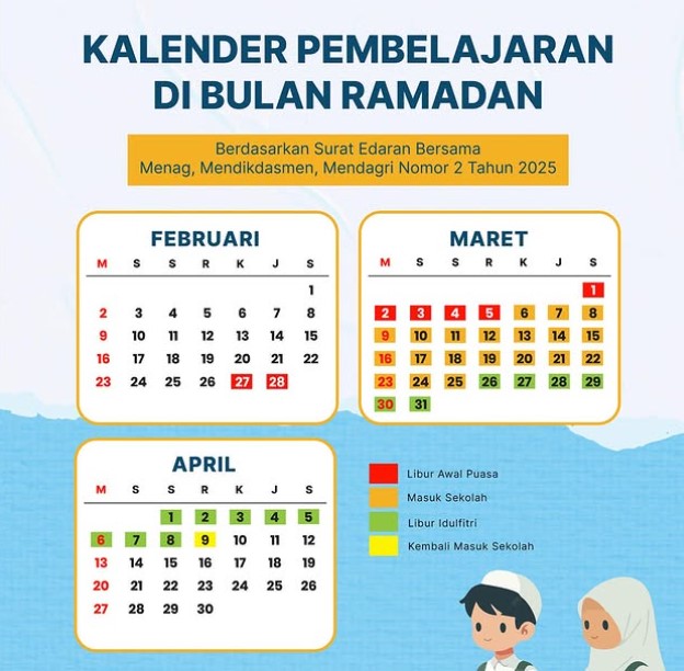 Berikut kalender pembelajaran selama bulan Ramadhan 1446 Hijriah: